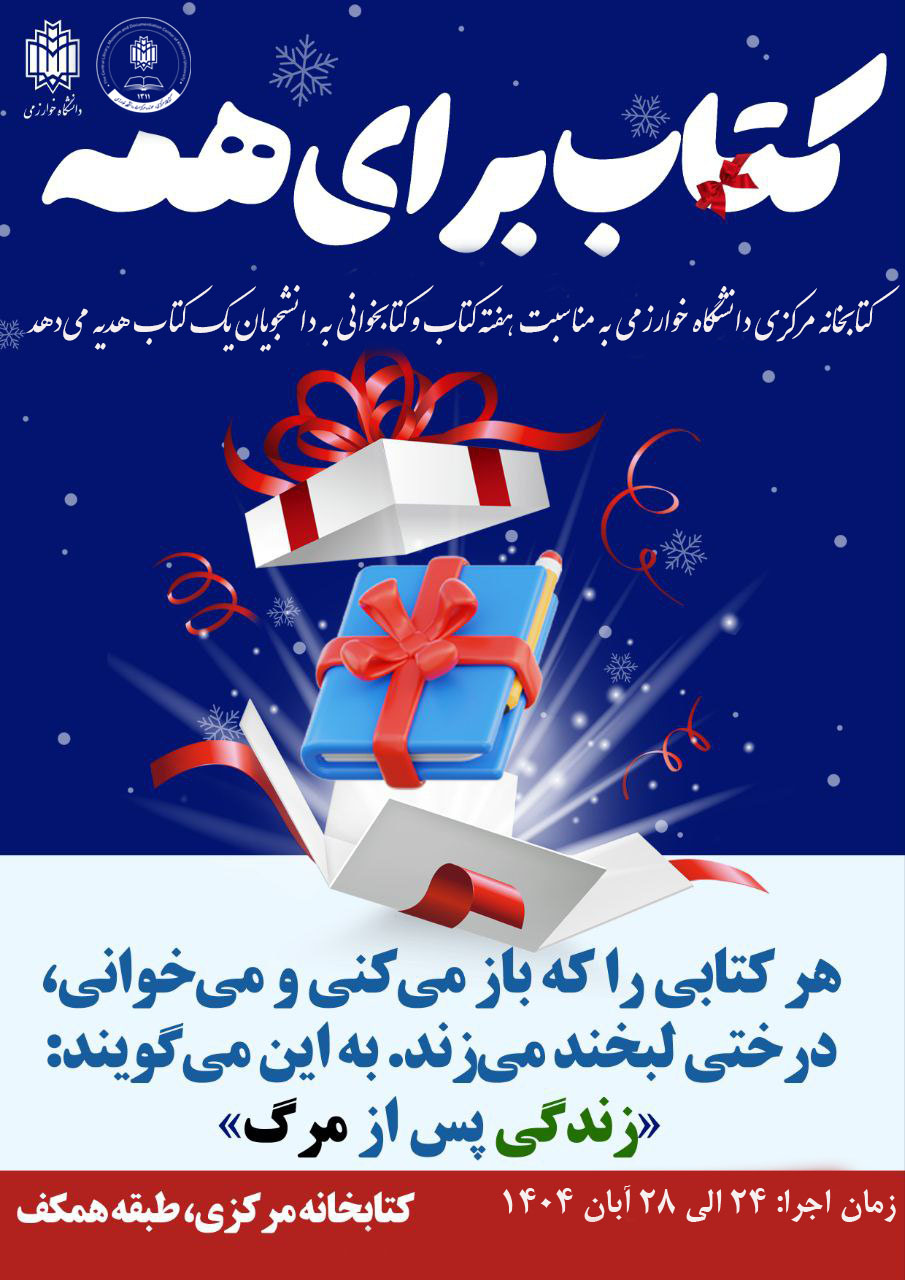 کلیدواژه ها: دانشگاه خوارزمی | کتابخانه مرکزی موزه و مرکز اسناد دانشگاه خوارزمی | اهدای کتاب | هفته کتاب و کتابخوانی |