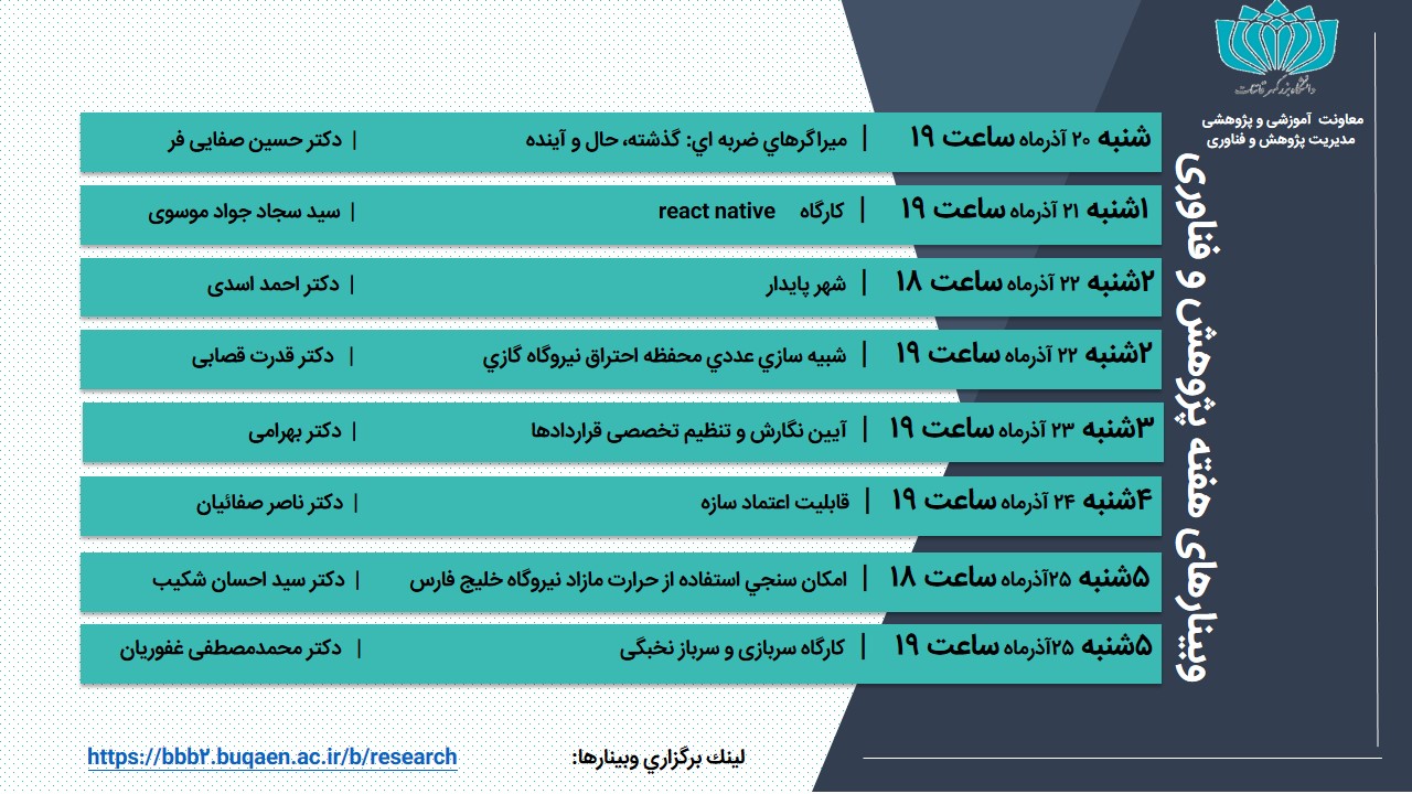 وبینارهای هفته پژوهش و فناوری دانشگاه بزرگمهر قائنات