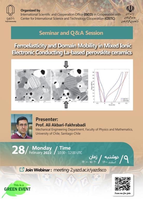 وبینار فروالاستیسیته و پویایی حوضچه‌ها در پروسکایت‌های پایه لانتانیوم با هدایت یونی و الکترونی