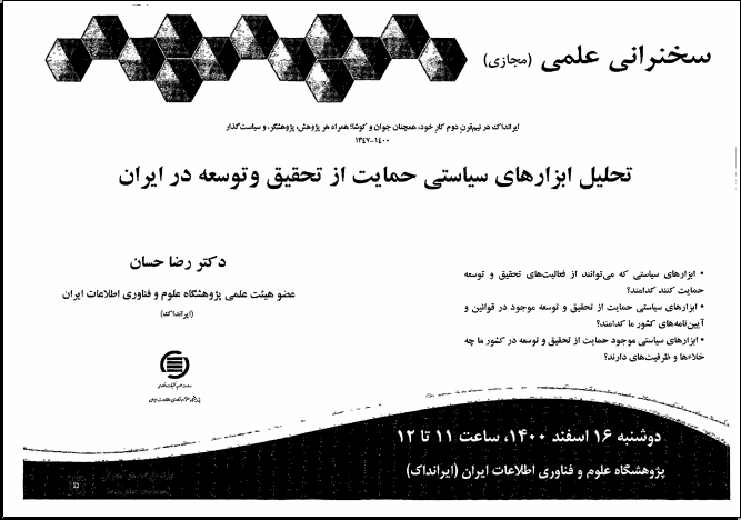وبینار تحلیل ابزارهای سیاستی حمایت از تحقیق و توسعه در ایران