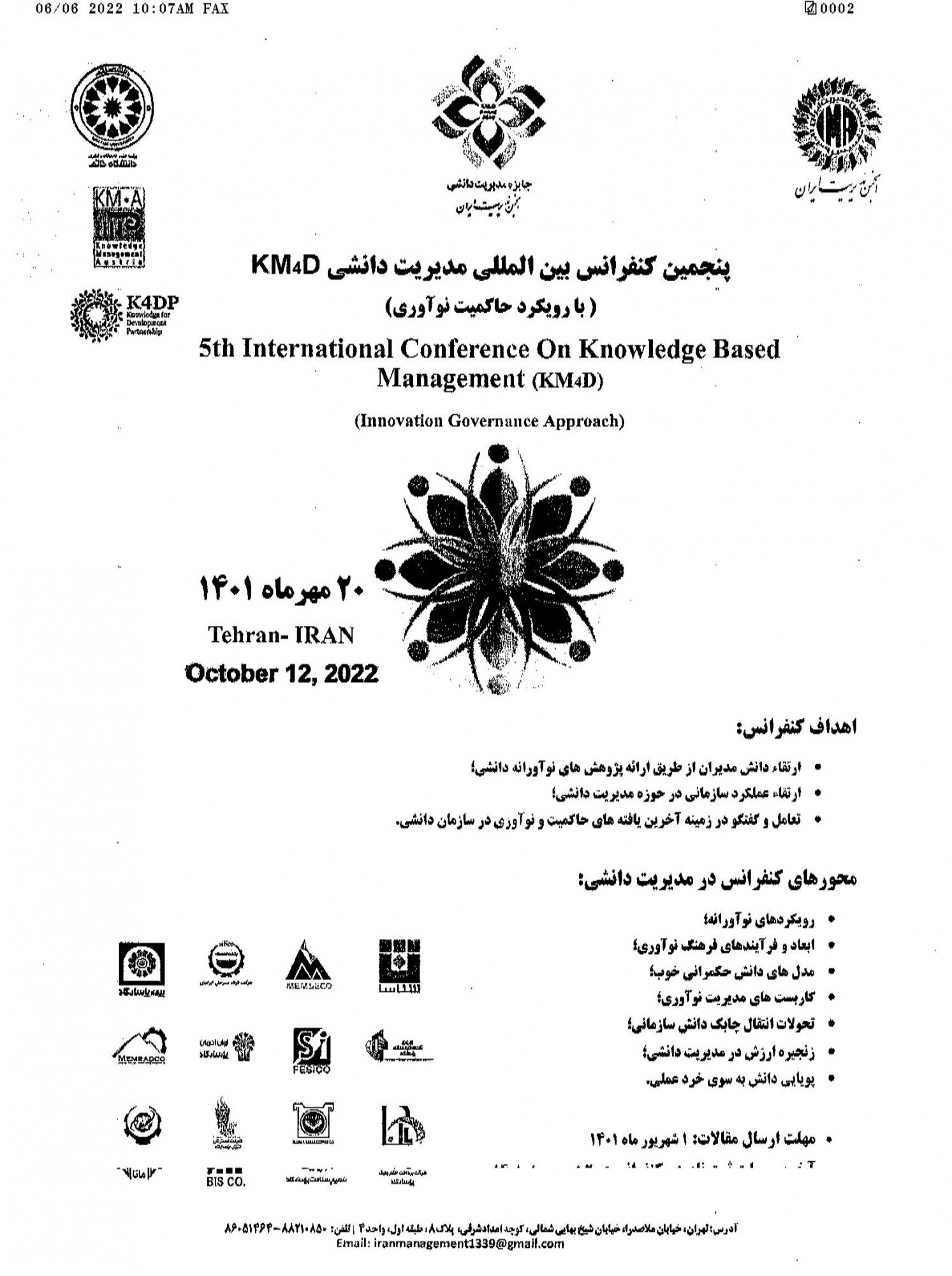 پنجمین کنفرانس بین المللی مدیریت دانشی با رویکرد حاکمیت نوآوری