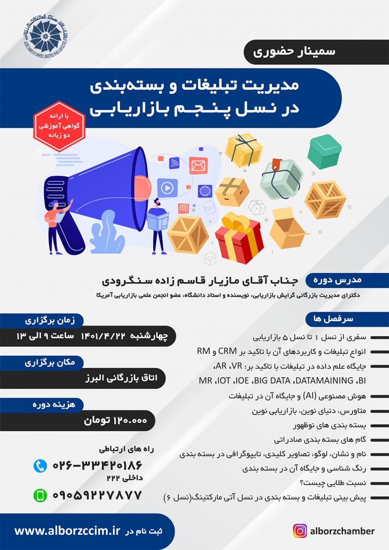 سمینار حضوری مدیریت تبلیغات و بسته بندی در نسل پنجم بازاریابی