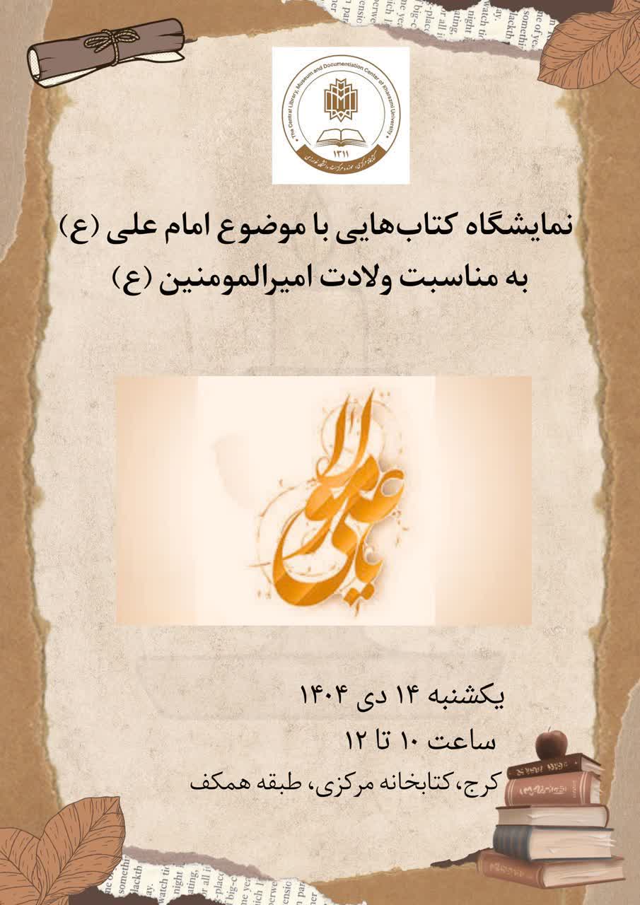 کتابخانه مرکزی دانشگاه خوارزمی به مناسبت میلاد امام علی (ع) نمایشگاهی از کتاب‌های موضوعی مرتبط با امام اول شیعیان را برگزار می‌کند.