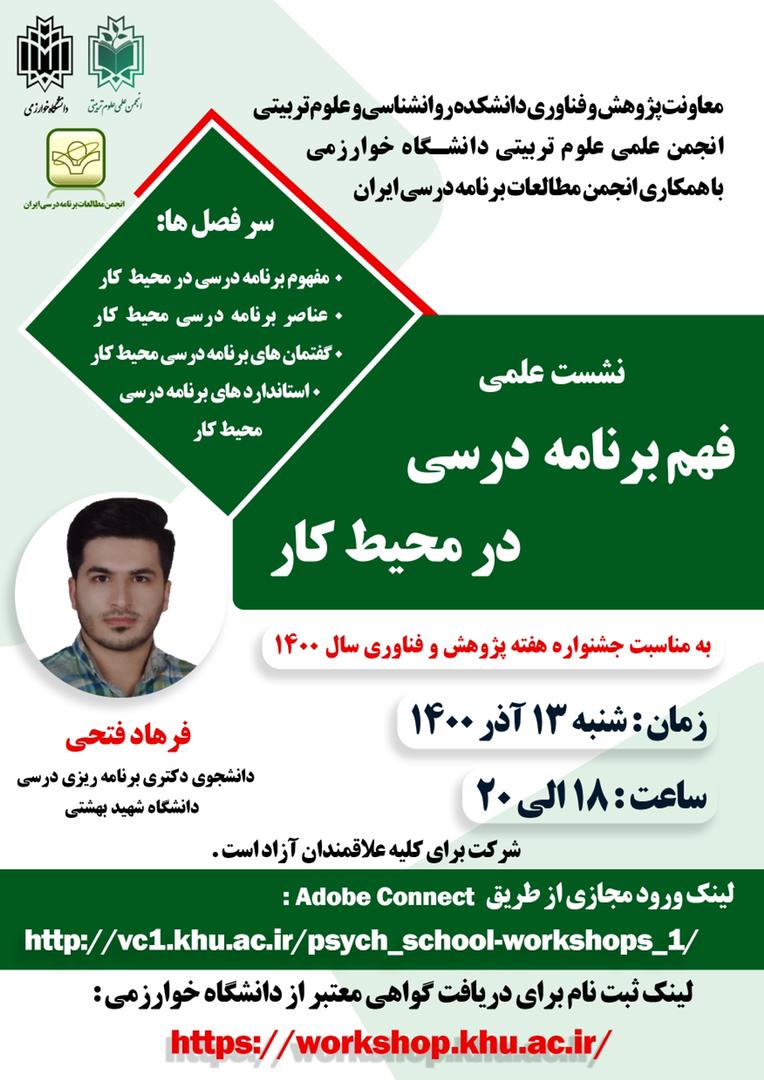 مدرس:  آقای فرهاد فتحی - دانشجوی دکتری برنامه درسی دانشگاه شهید بهشتی