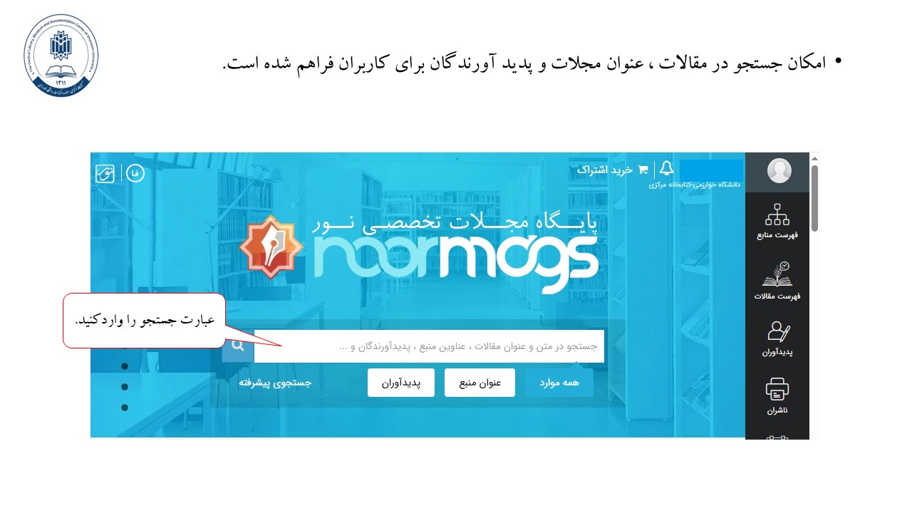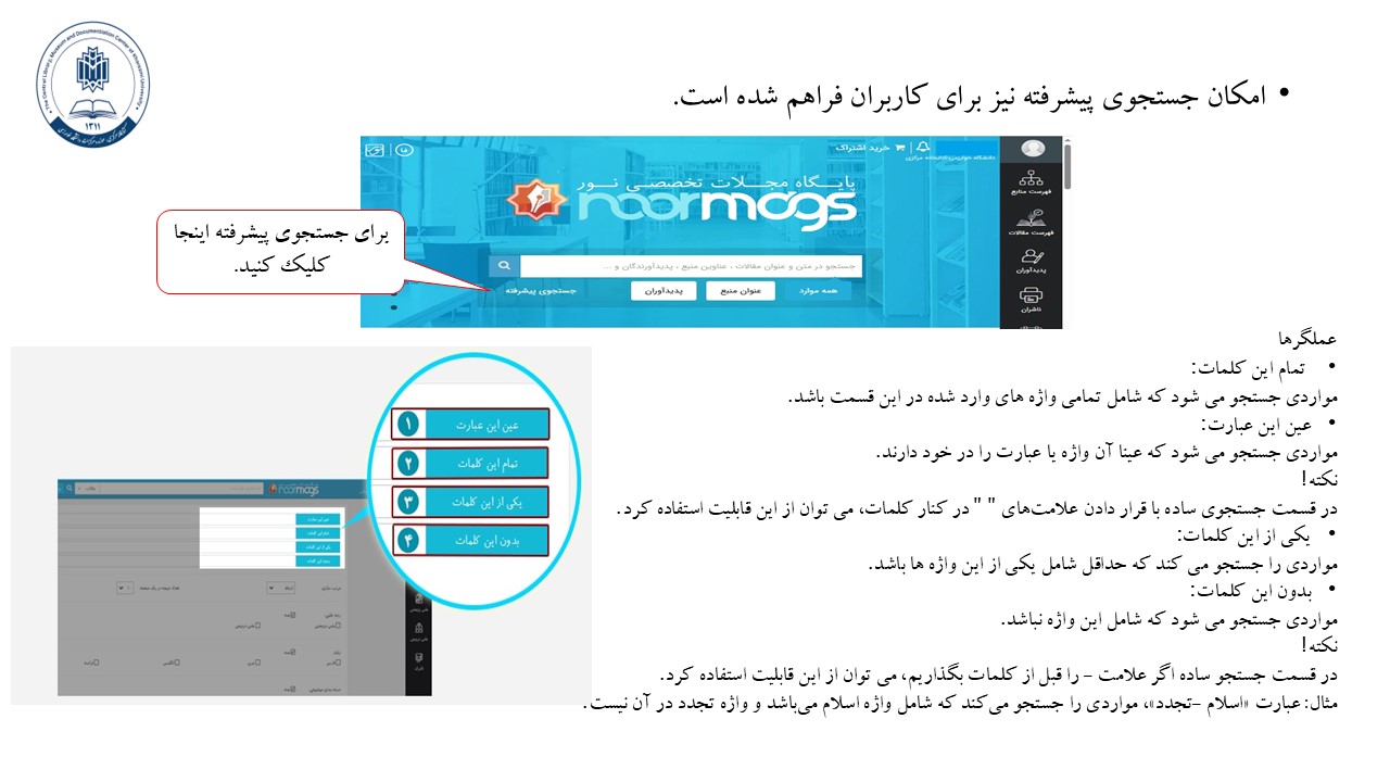 برخی از قابلیت های فراهم آمده در پایگاه نورمگز: